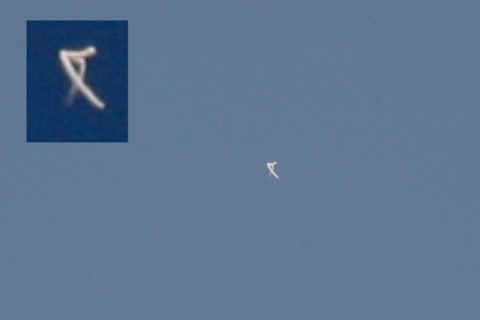 Arriba: una de las cuestionadas imágenes que circulan en internet del supuesto satélite extraterrestre "Caballero Negro".