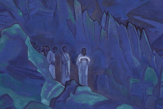 Arriba: La Hermandad Blanca, en una pintura de 1924 del explorador ruso Nicolás Roerich.